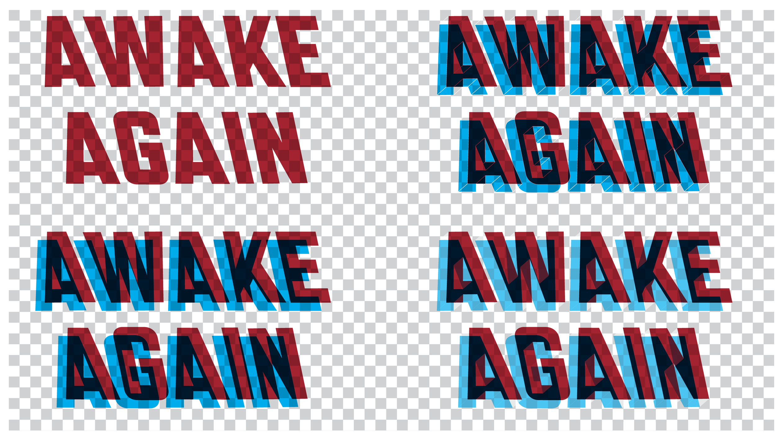 Inspired by the red and blue panels on retro 3D glasses for the lettering, I found I could also play with the appearance of the colours so that they became opaque when they overlapped. Sometimes I suffer from bouts of acute insomnia, so this lettering was inspired by those times.